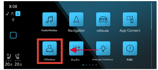 👉 Sélectionnez l’élément « Utilisateur » dans le menu principal.